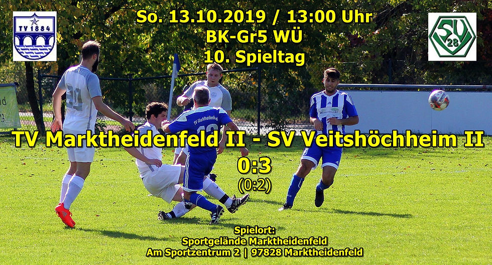 Zur Fotogalerie Spielbericht von Sebastian Schmidt: Die zweite Mannschaft des SVV holte in Marktheidenfeld einen ungefährdeten Dreier und belegt nach acht Spieltagen den dritten Rang. Nach einer halben Stunde verwandelte Sven Steinhardt einen Foulelfmeter zur Veitshöchheimer Führung. Kurz darauf erhöhte Zabiullah Mohammadi nach Vorarbeit Sven Steinhardts auf 2:0. Die Grün-Schwarzen waren den Gastgebern insgesamt überlegen und hätten weitaus höher gewinnen können. Erst kurz vor Schluss traf erneut Sven Steinhardt mit einem Schuss ins lange Eck auf Vorarbeit Alexander Conrads zum 3:0. Positiv anzumerken ist, dass der SVV mit erst sechs Gegentreffern die beste Defensive der Liga stellt. Diese Stärke gilt es gegen den SV Aalbachtal II am kommenden Sonntag gewinnbringend einzusetzen. Es spielten: Gosdzick, Preisinger, Kemmer, Dambach, Mohammadi, Conrad, Winter, Watkins M., Blankart, Dippl, Steinhardt, Neubauer, Watkins S., Oppel Torschützen: Steinhardt 2x, Mohammadi