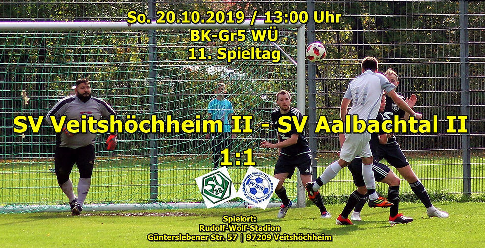 Zum Fotoalbum Spielbericht von Sebastian Schmitt: Gegen den bisherigen Tabellenführer SV Aalbachtal II zeigte die zweite Mannschaft des SVV eine starke Leistung und war dem Sieg am Ende näher als die Gäste. Nach nur neun Minuten ging Aalbachtal in Führung, nachdem Mager einen zuvor abgefälschten Freistoß über die Linie gedrückt hatte. Insgesamt hatten die Grün-Schwarzen mehr vom Spiel, konnten daraus aber im ersten Durchgang nichts Zählbares gewinnen. Nach Wiederanpfiff erzielte Sven Steinhardt infolge einer von Stephan Watkins ausgeführten Ecke den Ausgleich. Im weiteren Spielverlauf sollte keiner Mannschaft mehr ein Tor gelingen. Damit stellen die Grün-Schwarzen weiterhin die beste Defensive der B-Klasse-Gr.5 und haben nach einem spielfreien Sonntag am 03.11 die Möglichkeit gegen den SV Bischbrunn II dies erneut unter Beweis zu stellen. Es spielten: Gosdzick, Brand A., Mohammadi, Dambach, Schläfke, Winter, Pikos, Watkins S., Blankart, Watkins M., Steinhardt, Oppel, Füller C., Brand M. Torschütze: Steinhardt